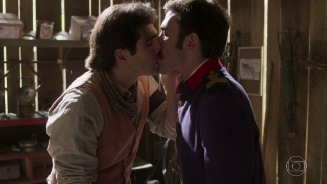 A cena começa quando Luccino (Juliano Laham) e Otávio (Henrique Muller) discutindo sobre o futuro, já que Luccino terá de retornar ao quartel em breve. Os dois se declaram e Luccino lembra da primeira vez que os dois se tocaram. "Foi rápido, mas eu senti uma eletricidade que foi direto pro coração. Agora me sinto em paz", falou.>