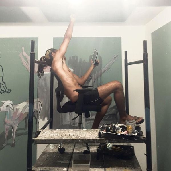 Desde então, vivem ali. Dormem em colchões estirados no segundo andar da exposição -num retrato que lembra a carta do Mundo, do tarô, a irmã de Barros, Gigi, os espreita da parede. Os andaimes, alugados para pintar o teto, viraram equipamentos de ginástica. Cadeiras de plástico coloridas que servem de base para uma instalação fazem as vezes de varal.>