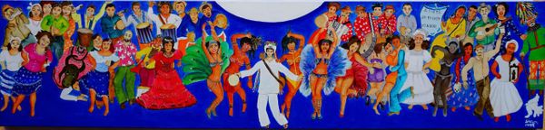 Os dois quadros da pintora de São Mateus, Norte do Espírito Santo, foram feitos em 2019. Juntos, eles retratam a depredação do meio ambiente com críticas sociais e também exaltam parte da cultura capixaba e brasileira. >
