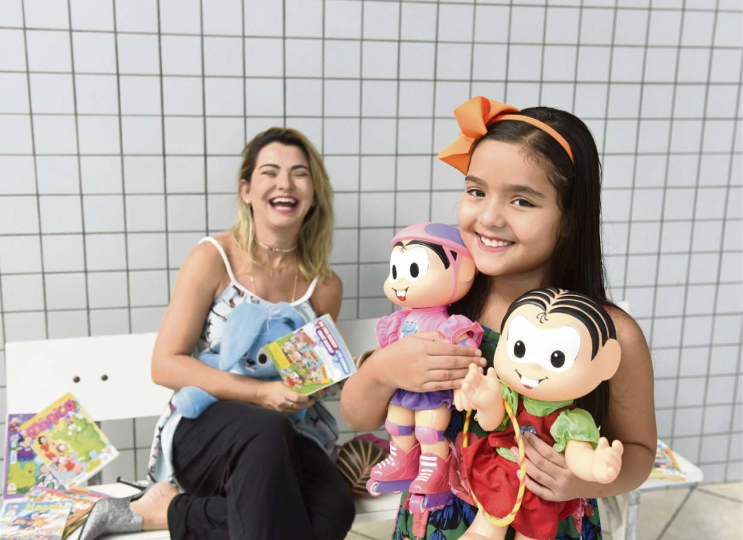 "Era morena, dentuça e brigona. Sempre fui meio brava e, como ela, adorava defender os meus amigos. Só não tinha um Sansão, mas resolvia as confusões do mesmo jeito, na base da força", ri, dizendo que, pelo menos, a filha Luísa (7) conseguiu ter o mesmo coelhinho da "goldinha bligona" mais famosa do país. "Ela herdou a minha paixão pelos personagens. Tem uma coleção de vários bonecos e mais de 100 revistas. Prefere ler em papel, de maneira tradicional. Como no meu caso, a Turma da Mônica despertou nela a sede de leitura. Hoje, faz questão de organizar festas temáticas sobre o assunto e vê todos os desenhos que passam na televisão".>