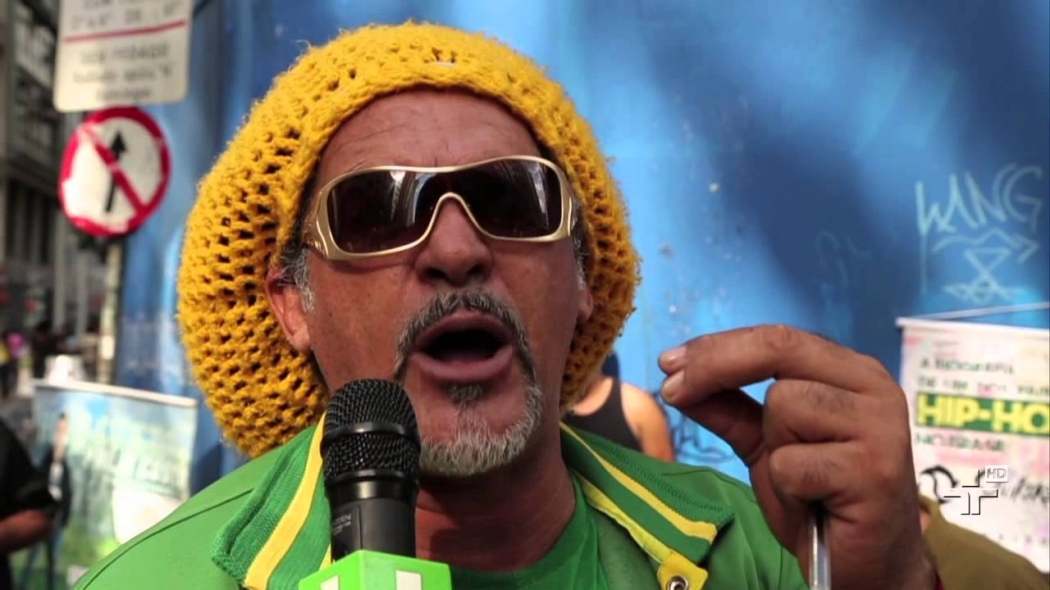 Quem estava lá? Nelson Triunfo, importante b-boy considerado um dos pais do movimento hip hop pelas bandas de cá. Em 1979, começamos a usar a rima falada, fui um dos primeiros caras a ter vinil, já usávamos o rap de uma forma ou de outra. Mas começamos a nos organizar na rua de 1982 para 1983, quando houve mesmo um marco. Combinávamos com um bocado de jovens na esquina da Mesbla, conta Nelsão, como ainda é chamado por amigos do meio, se referindo ao prédio que hoje abriga o Sesc 24 de Maio.>
