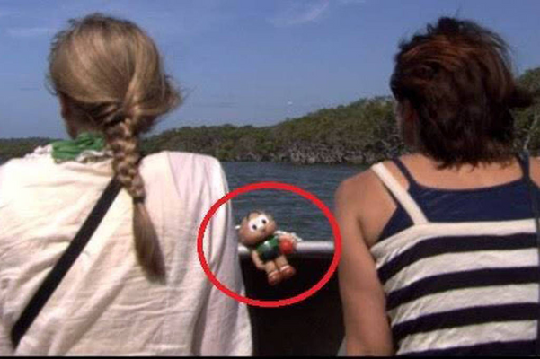 Trata-se de um boneco do personagem Cebolinha, da "Turma da Mônica", que aparece em algumas cenas do filme de horror que retrata a história de um grupo de viajantes atacado por um crocodilo.>