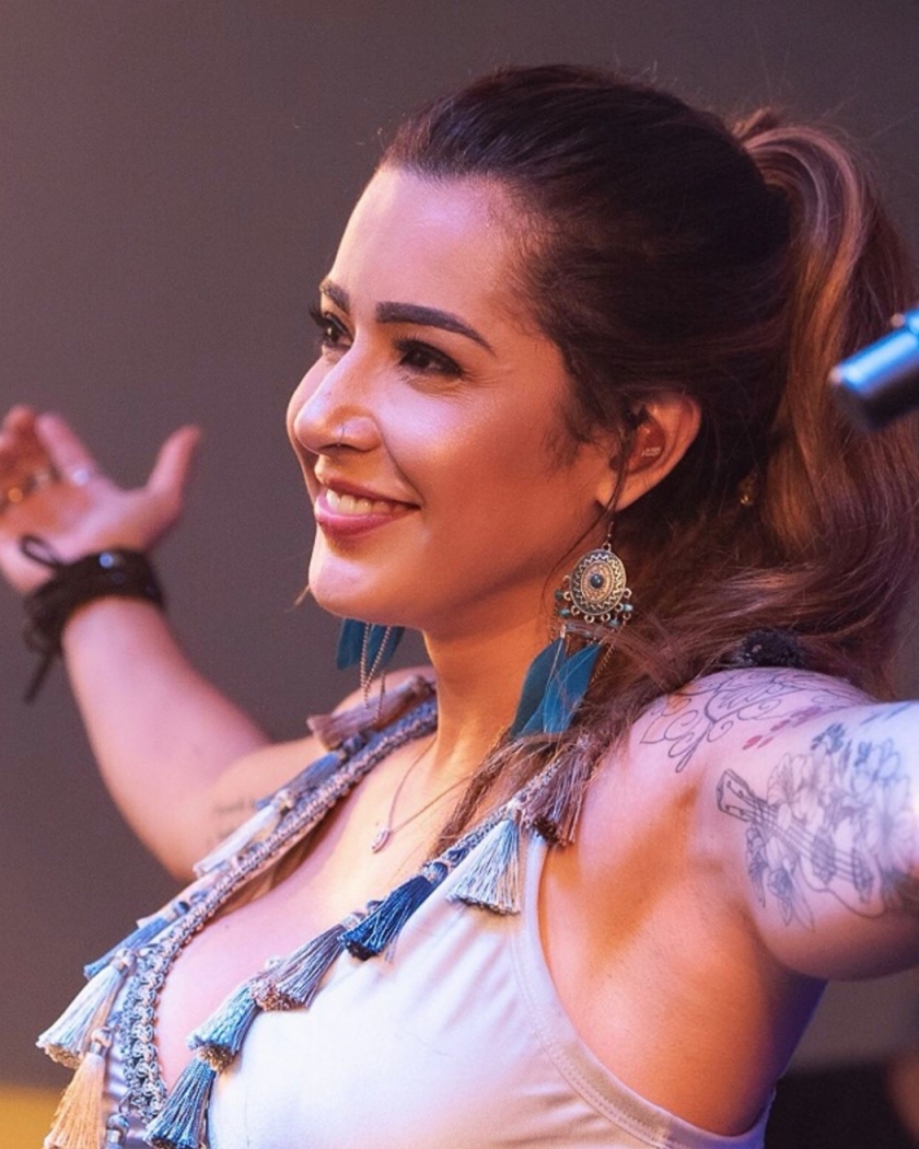 Roberta Miranda, sem dúvida, pela mulher que é; Ivete Sangalo, que também é uma grande referência; Marília Mendonça, do sertanejo, também admiro muito e tem grande personalidade; Lady Gaga, que sou muito fã e vejo uma artista muito completa; Beoyncé; e Cássia Eller, que ouvi muito na minha adolescência.>
