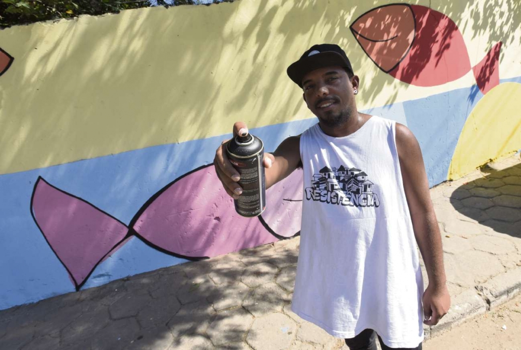 Handerson Chic, grafiteiro de 28 anos, foi um dos selecionados pelo edital do "A Arte é Nossa". Em decisão conjunta com os moradores do bairro Resistência, resolveu fazer uma intervenção urbana no muro da Unidade de Transbordo, a usina de lixo da região. >
