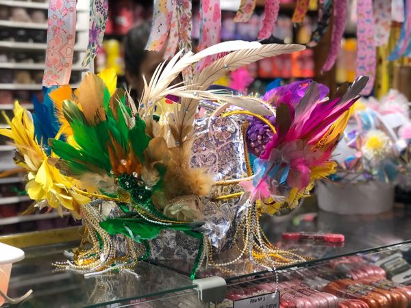 Além dos adereços que são novidade no mercado, as tradicionais plumas seguem firmes nos arcos e em arranjos de cabelo que são comercializados a partir de R$ 10 no Armarinho Sete, no Centro de Vitória. Lá, muitos foliões acabam optando, também, por comprar itens para customizar presilhas, arcos feitos à mão e camisetas que estão na fila para serem recicladas para o carnaval. >