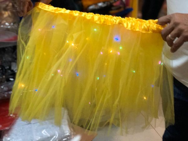 No mesmo empreendimento, as saias de LED são vendidas por R$ 39,99; óculos que acende e pisca por R$ 39,99; chapéu que pisca por R$ 27,30 e cílios de led por R$ 12,99. >