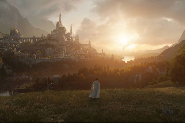 A Amazon divulgou nesta segunda-feira (2) a primeira imagem da série de "O Senhor dos Anéis" que está sendo produzida para a Amazon Prime Video. Nela, é possível ver uma figura com capa branca observando de longe um dos cenários da trama. >