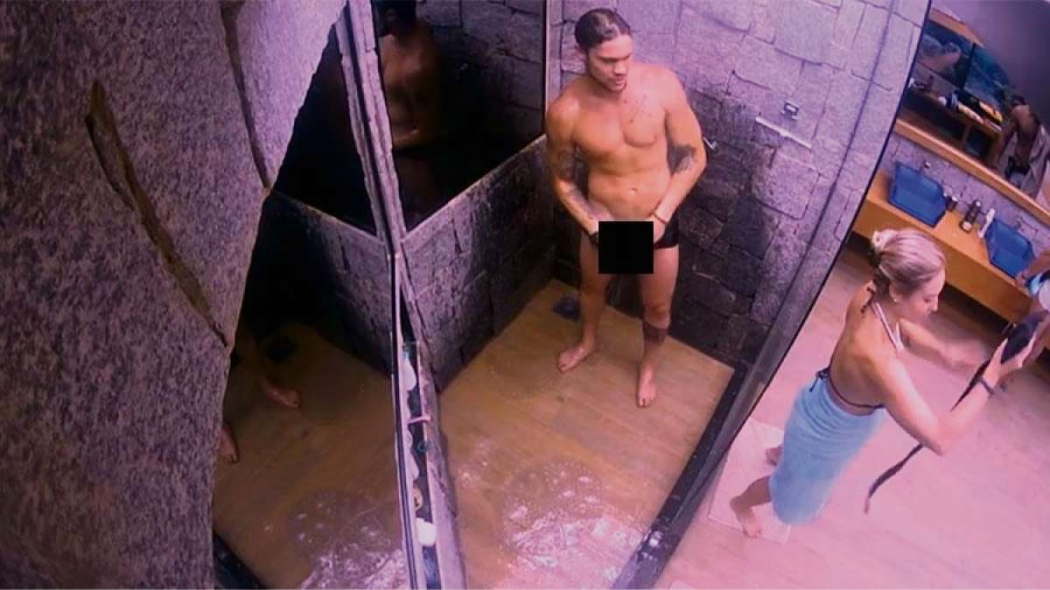 O arquiteto conversava com Jéssica e parece não ter percebido o descuido. Durante a conversa com a personal trainer, o brother continuou se ensaboando e lavando o cabelo, como se nada tivesse acontecido.>