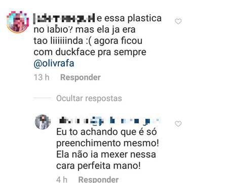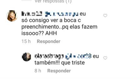 Mas, para muitos seguidores, um outro detalhe chamou mais atenção: a boca da atriz. Nos comentários, muitos apostam que a ruiva tenha feito preenchimento labial.>