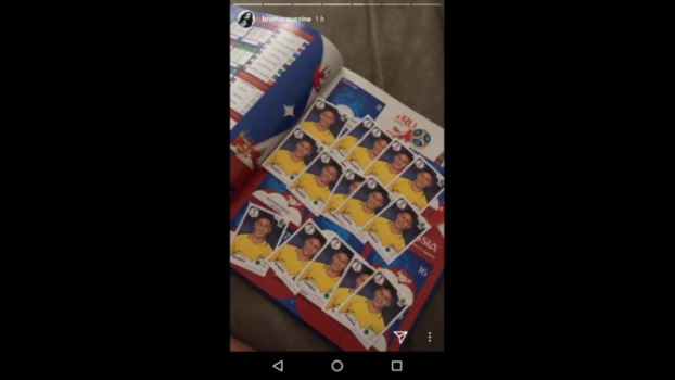 Bruna publicou o momento em que abria os recebidos em seu Stories do Instagram. Na capa, havia uma pergunta: "Bruna, a Panini quer saber: figurinha repetida completa álbum?". Então chegou a hora de abrir as figurinhas. "Eu abri o primeiro saquinho, aí olha a primeira figurinha. Eu falei: 'Meu Deus, não acredito! É muita conexão'", disse a atriz, até perceber que se tratava de uma pegadinha. "É uma cilada, Bino. É um jogo comigo".>