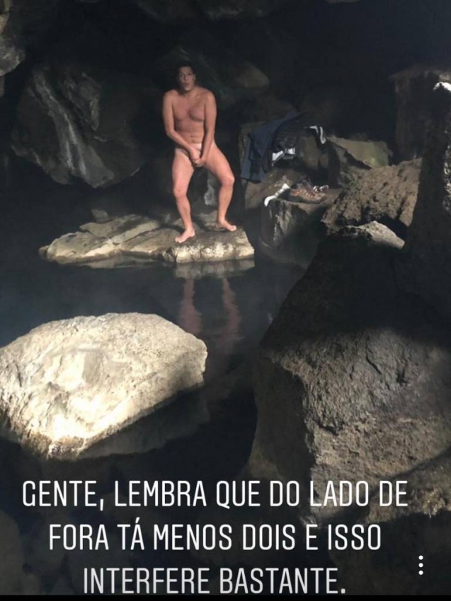 O humorista e apresentador Fábio Porchat, 35, e sua mulher Nataly Mega, 30, estão passando as férias na Islândia. Em um inverno de temperaturas negativas, o casal está narrando todas as suas aventuras pelo Instagram. Em uma delas, Porchat nadou pelado nas águas que ficam dentro de uma gruta de gelo.>