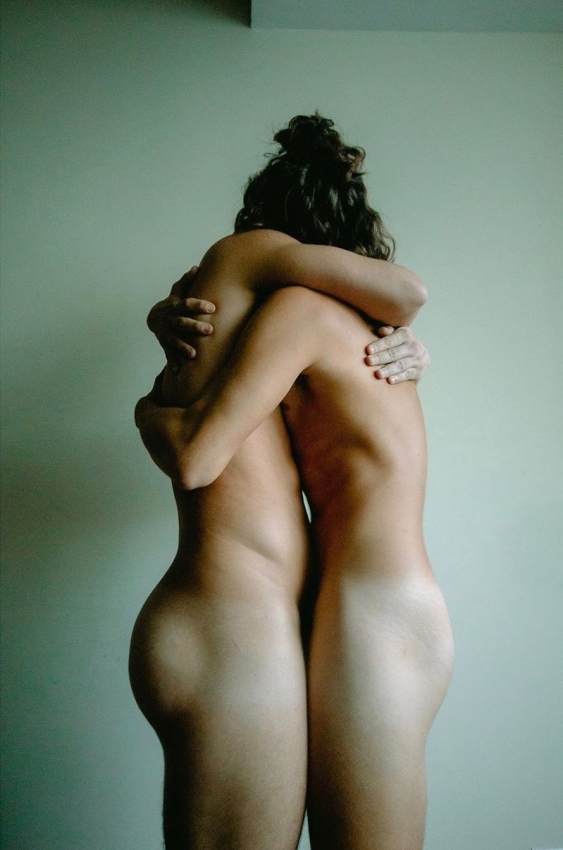 Em uma série de fotos mais ousadas, eles surgem só de moletom e cuecas, com guarda-chuvas e, depois, totalmente pelados e abraçados. >