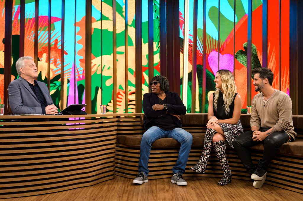 E foi com essa reverência que ele, Milton, foi abraçado pelos atores Giovanna Ewbank e Bruno Gagliasso, também convidados para falar sobre adoção no programa: a filha deles, Titi, chegou à vida do casal depois de uma viagem de Giovanna ao Malawi. Os dois se juntam a Milton para declamar trechos da nova música do cantor, "Além de Tudo", que saberemos durante o programa que foi composta para Augusto, que está milagrosamente sentado na plateia.>