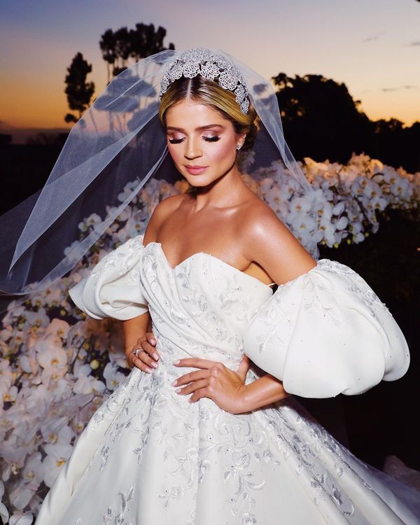 De acordo com Fábia Oliveira, o modelo pode ter custado nada menos que algo em torno de R$ 200 mil. Com mangas bufantes, cauda volumosa e saia expressiva, o look foi feito pelo concorrido ateliê de alta costura Ralph & Russo. Para quem não sabe, é lá que Angelina Jolie e a noiva de Justin Bieber, Hailey, fazem encomendas quando querem um vestido mais exclusivo. >