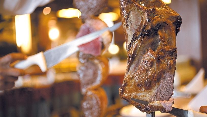Na Churrascaria Minuano há rodízio no almoço e no jantar, com mais de 20 variedades de carne. O valor por pessoa de terça a sábado é R$ 79 e aos domingos e feriados R$ 84. Entre os destaques, cortes bovinos da raça Angus e opções como shoulder steak, paleta de cordeiro uruguaio, short rib e granito (peito de boi Angus). O cardápio à la carte inclui hambúrguer assado na brasa (blend da casa). Horários: de terça a sábado, das 11h às 15h e das 18h30 às 23h; domingo e feriado, das 11h às 16h. Av. Dante Michelini, 337, Jardim da Penha, Vitória. (27) 2121-7877. FOTO: Vitor Jubini