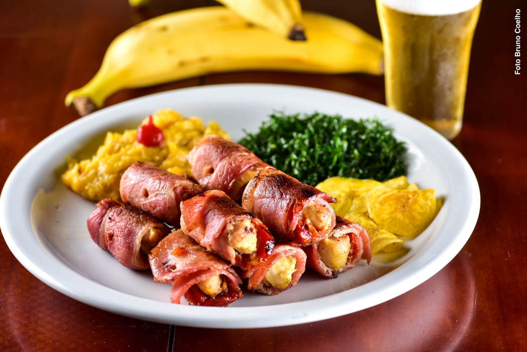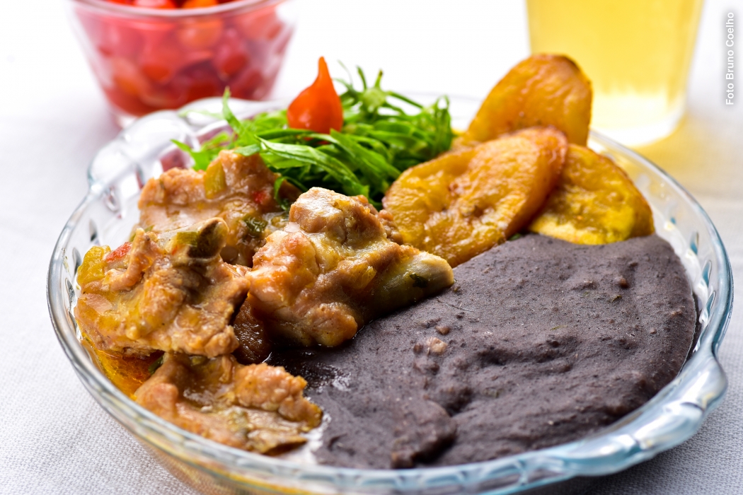 Petisco: Tutu da Vovó: tutu de feijão, costelinha suína frita, couve, banana da terra frita e ovo de codorna.>