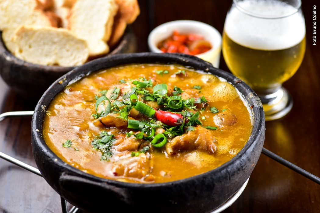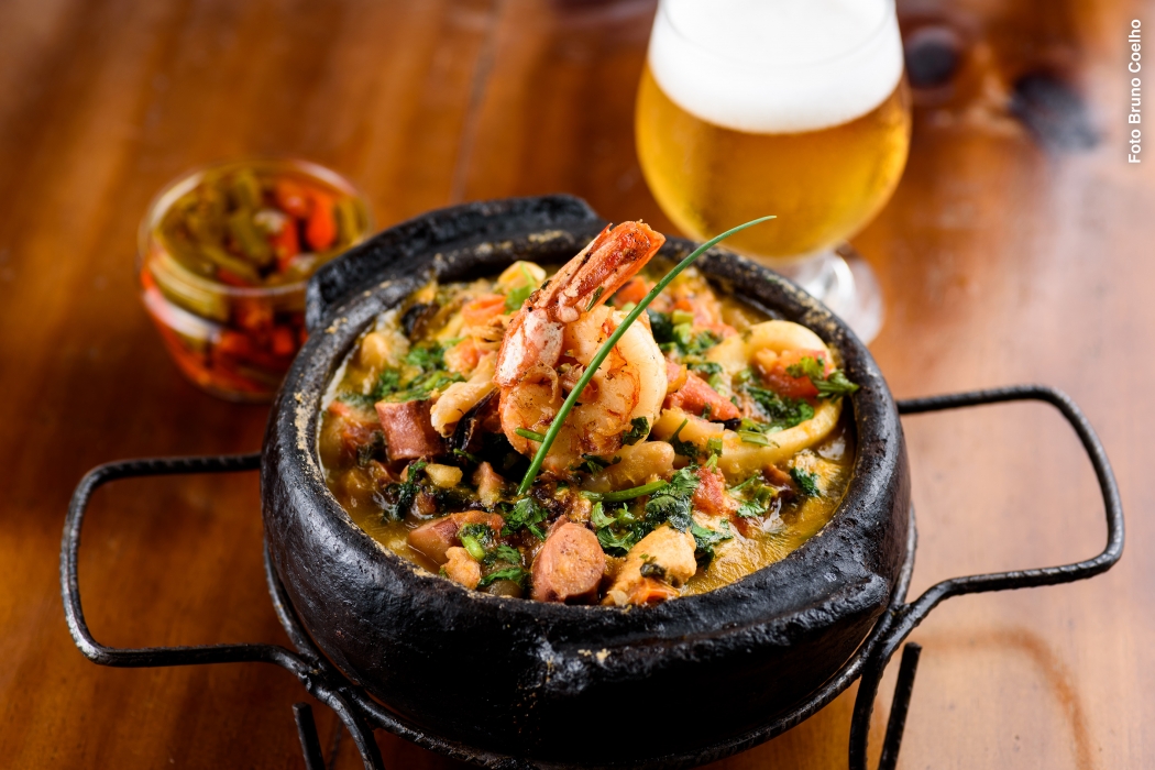 Petisco: Feijoadinha de frutos do mar: cação, lula, polvo, mexilhão, camarão sete barbas, sururu e camarão VG.>