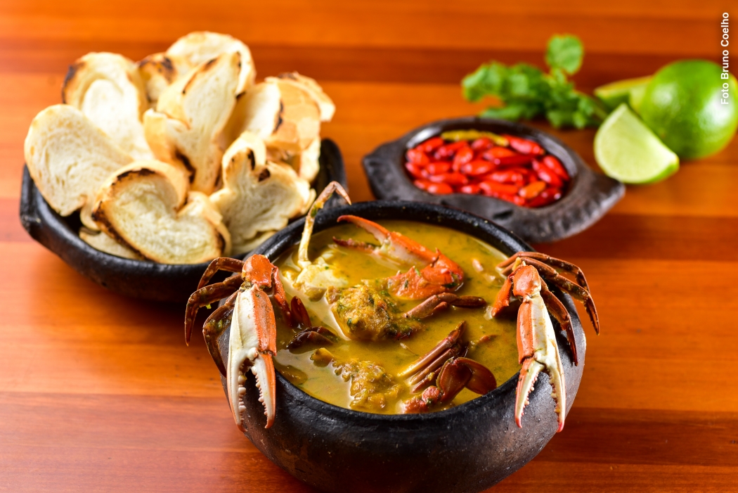 Petisco: Muma de siri: moqueca de siri com casco, servida em pirão de carne de siri.>