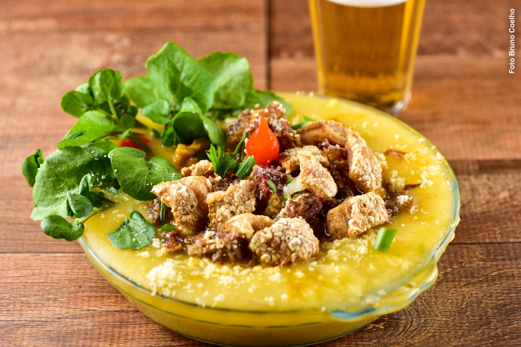 Petisco: Medalha de ouro: medalhões suínos com crosta de tapioca acompanhados de polenta de feijão.>