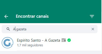 Agora, é só digitar alguma palavra-chave relacionada ao conteúdo de interesse. Para receber notícias sobre o Estado, é só digitar "Espírito Santo" ou "A Gazeta". E fique atento ao selo de verificação para ter certeza de que está na página oficial. >