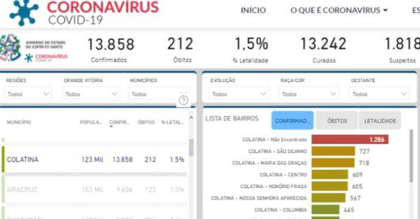 Desde o início da pandemia do novo coronavírus o Painel Covid-19, mantido pela Secretaria de Estado da Saúde (Sesa), divulga os dados da doença no Espírito Santo. A ferramenta possibilita o acompanhamento dos bairros com mais registros de casos, mas entre eles, um chama atenção: o “bairro não encontrado” em Colatina. Segundo a atualização mais recente da plataforma, são 1.286 pacientes nessa "localização", colocando o “bairro” entre os 15 que mais apresentam contaminações no Estado e o líder absoluto na cidade. >