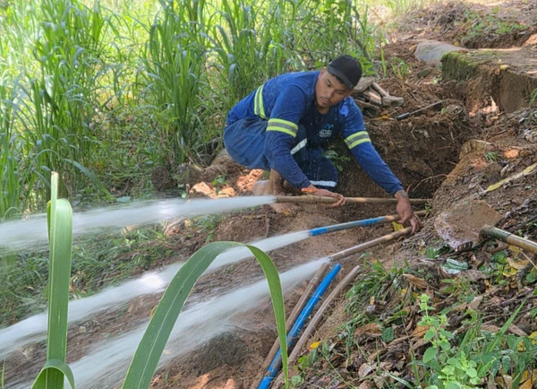 Corpo de Bombeiros do Espírito SantoApós localizar o animal, a etapa seguinte consistiu em retirá-lo do cano. Os militares realizaram várias tentativas de impulsionar a cadelinha para ela sair andando do tubo, usando uma mangueira para empurrá-la até a saída oposta e, depois, usando um filete fino de água, mas o método não deu certo. >