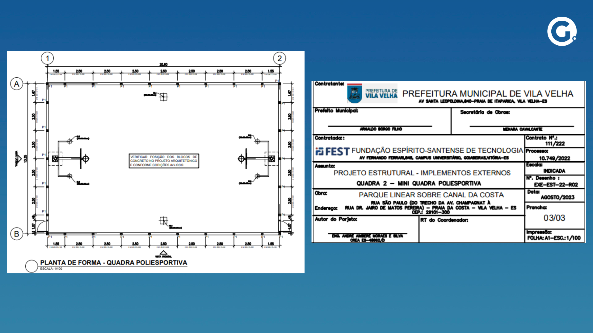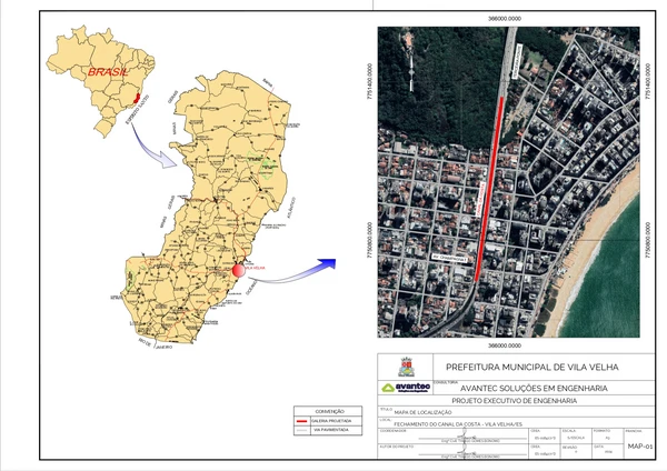 A Secretaria de Obras e Projetos Estruturantes da Prefeitura de Vila Velha esclarece que o trecho linear efetivamente contemplado pela obra de tamponamento no Canal da Costa possui cerca de 707 metros, conforme previsto no projeto executivo e nas informações disponíveis para consulta pública.