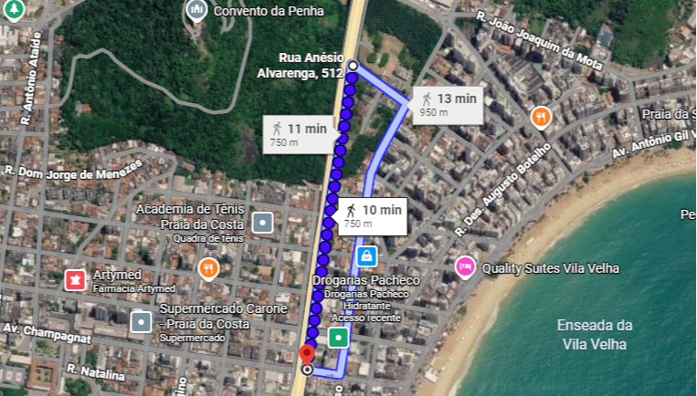 A reportagem de A Gazeta também utilizou mapas de navegação para medir a distância entre uma rua e outra e comparou os dados com imagens do projeto. Tanto para a implantação das galerias (imagem abaixo) quanto para a construção do parque, a extensão é de menos de um quilômetro. >