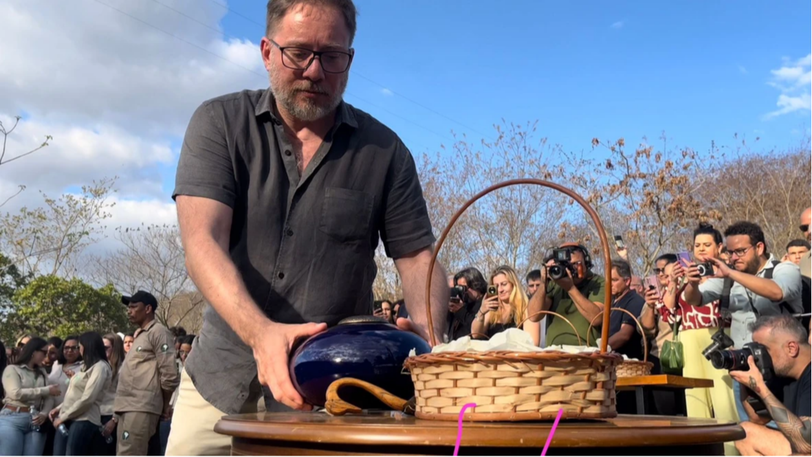 As cinzas do fotógrafo Sebastião Salgado foram depositadas neste sábado (16) nas raízes de uma muda de peroba no Instituto Terra, em Aimorés, no Vale do Rio Doce, em Minas Gerais. O gesto atendeu ao desejo do artista, que morreu em maio deste ano, aos 81 anos, em Paris, vítima de leucemia decorrente de complicações de uma malária contraída em 2010. >