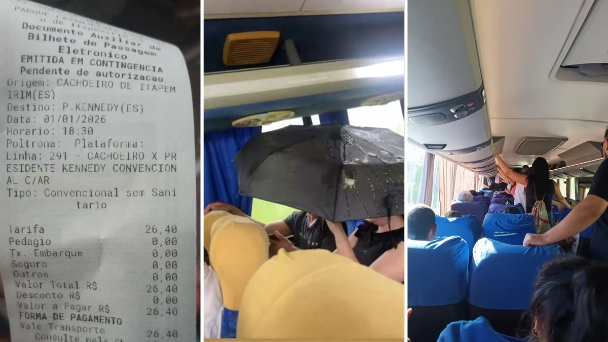 Já para quem vai para Presidente Kennedy, o aumento foi de R$ 18 para R$ 26,40. "As pessoas estão pagando uma passagem mais cara para ir em pé dentro do ônibus durante o trajeto", disse uma servidora pública, de 48 anos, que contou que sai diariamente de Cachoeiro de Itapemirim para Presidente Kennedy. Um vídeo compartilhado nas redes sociais mostra, ainda, uma mulher abrindo um guarda-chuva dentro do veículo para se proteger de goteiras. >