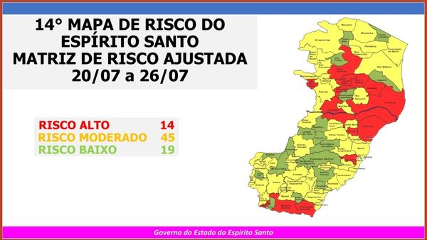 Em risco moderado, o comércio fica liberado para funcionar durante a semana, das 10h às 16h, sem o rodízio por segmentos. Na Grande Vitória, apenas Cariacica permanece em risco alto e com mais restrição de funcionamento. Quando se trata da região metropolitana, Fundão e Guarapari também estão no nível moderado. Esta classificação começa a valer nesta segunda-feira (20) e vai até o próximo domingo (26).>