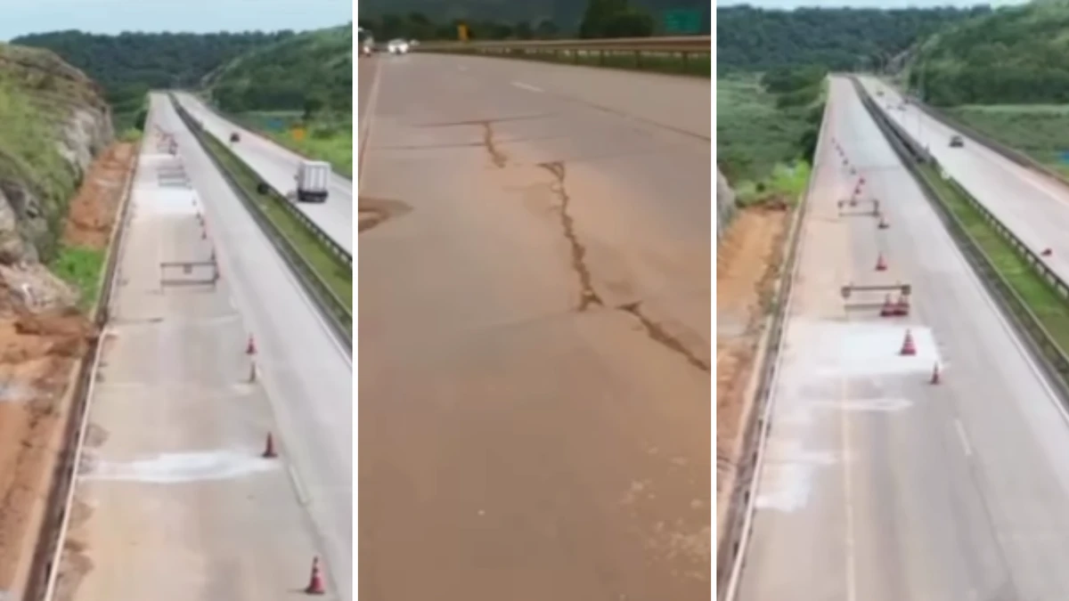 Imagens publicadas nas redes sociais mostram algumas pistas fechadas e outras com grandes rachaduras. Em um vídeo compartilhado com a redação de A Gazeta, é possível ver operários instalando uma nova laje de concreto próximo a uma curva. Assista abaixo.>