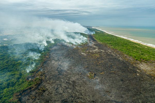 Mesmo após o incêndio ter sido controlado, a fumaça que vem das cinzas do Parque Paulo César Vinha, em Guarapari, continua. Motoristas que circularam pela Rodovia do Sol registraram a cena, neste sábado (24). O Corpo de Bombeiros esteve no local para continuar os trabalhos de resfriamento mas, pela extensão da área afetada – foram pelo menos sete quilômetros quadrados de destruição –, eles vão precisar voltar à região neste domingo (25). >