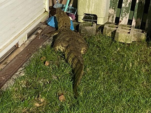 Ainda segundo a moradora, o jacaré apareceu depois das 19h de quinta-feira (19). Na manhã desta sexta-feira (20), porém, ele não estava mais no quintal. Ela chegou a ligar para a Polícia Militar Ambiental, mas nenhuma equipe teria ido ao local para o resgate. Míria não sabe dizer como nem quando o jacaré saiu.>
