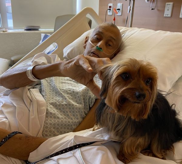 Um aposentado de 59 anos que trata um câncer desde 2018 recebeu, nesta quinta-feira (20), uma visita um tanto quanto especial no hospital em que está internado em Vitória. "Brad Pitt", o cão da família que tem nome de artista e é tratado como um filho, foi ao local para visitar o tutor, João Walter Ribeiro. Os dois não se viam há 20 dias. >