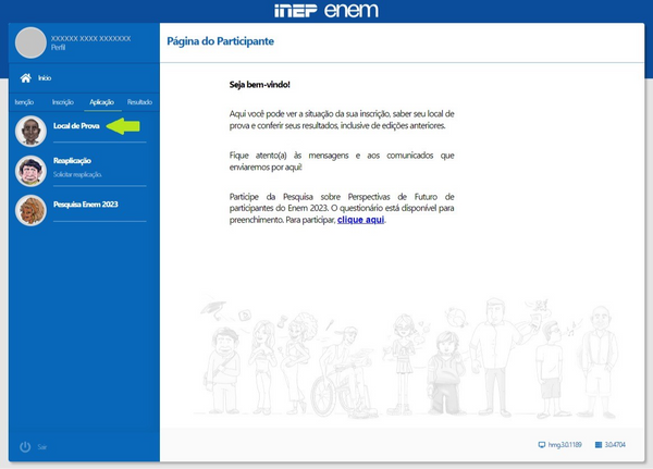 Já na Página do Participante, à esquerda da tela, clique em “Local de Prova”.>