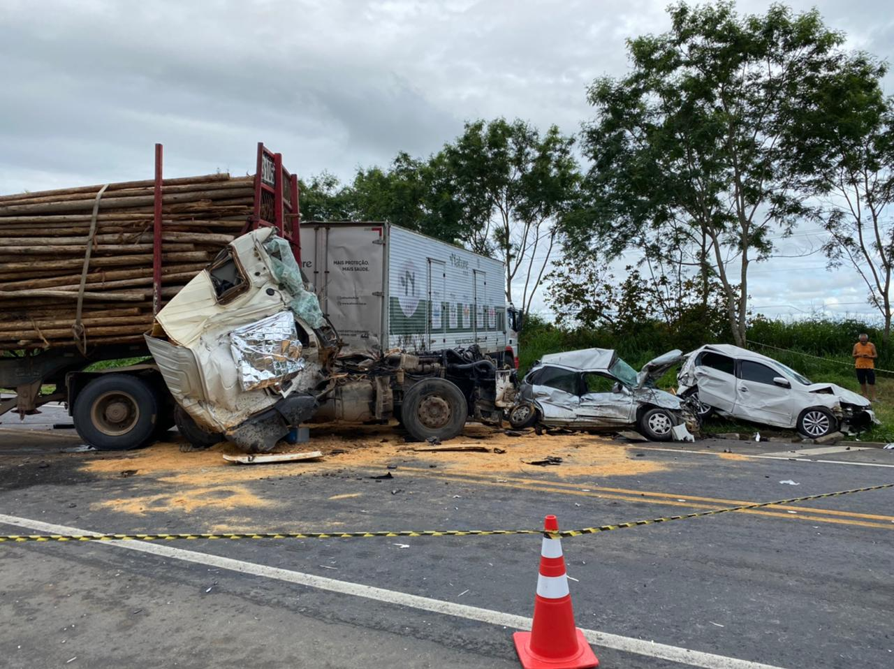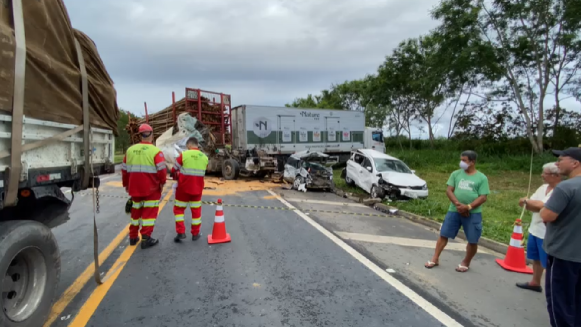 De acordo com a Polícia Rodoviária Federal (PRF), o acidente, no km 123 da via, envolveu duas carretas, um caminhão e três carros. Outras seis pessoas ficaram feridas. Quatro delas estavam em um carro branco e outras duas ocupavam um veículo cinza. Não há informações atualizadas sobre o estado de saúde. Os motoristas do caminhão e da outra carreta envolvida no acidente não se feriram.>
