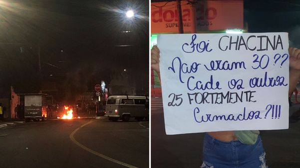 A reportagem esteve no local e constatou que manifestantes colocaram fogo em pneus e colchões no meio da avenida Coronel José Martins de Figueiredo, a principal da região. Por volta das 18h30, algumas lojas do entorno também estavam de portas fechadas. O Corpo dos Bombeiros e a Polícia Militar atuaram na ocorrência. >