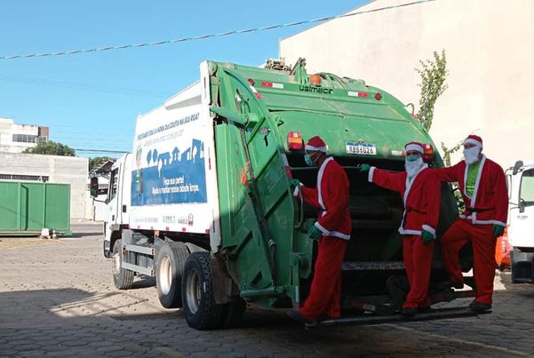 Coletores de lixo se vestem de Papai Noel em Aracruz