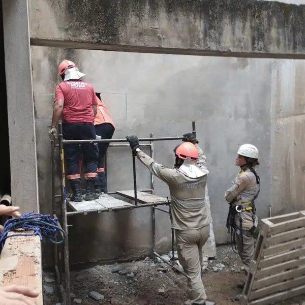 Como o local é de difícil acesso foi preciso utilizar uma escada e realizar uma descida de aproximadamente 10 metros. Para conseguir retirar Maria Cristina com segurança, foi preciso quebrar parte da parede da casa em construção com esmeril e marretas. >