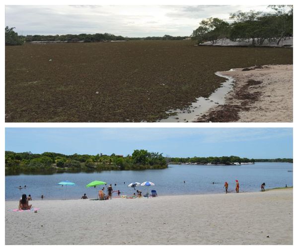 O biólogo Helimar Rebelo também explicou que essa planta é do gênero salvinia, comum em lagoas e outros corpos hídricos. Segundo ele, quando a concentração de nutrientes aumenta na água, elas podem se reproduzir rápido. O fato, cogitou, pode ocorrer por adubação de plantações perto das margens, esgoto ou em períodos de seca, onde a quantidade de água reduz. >