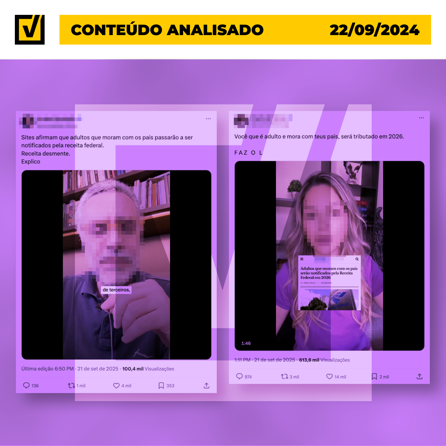 Conteúdo analisado: Posts afirmando que “adultos que moram com os pais serão notificados pela Receita Federal em 2026”. >