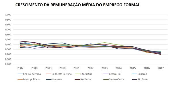 Na dimensão salarial, a maior queda aconteceu na Microrregião Centro Oeste (que inclui cidades como Colatina e Baixo Guandu), que apresentava um índice 0,52 em 2007 e veio a 0,36 em 2017.