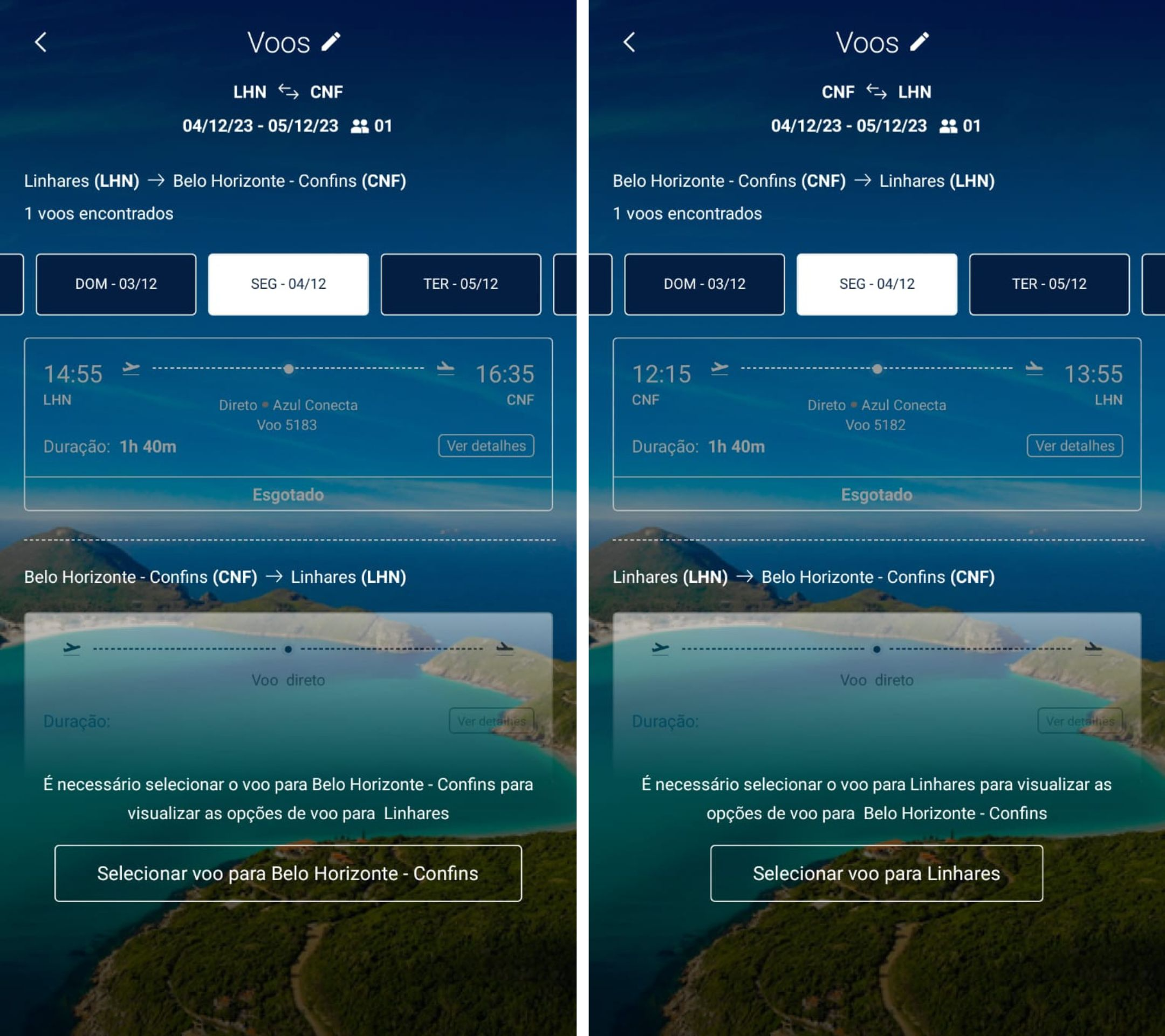 Já para o dia seguinte, ainda havia vagas até publicação deste texto. Saindo de Linhares na terça (5) e voltando na quarta (6), o valor da passagem estava em R$ 989,90. No trajeto contrário, partindo do aeroporto de Confins, a passagem sai por R$ 1.020,30 para a mesma data. >