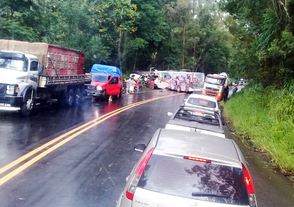 Segundo informações da Polícia Rodoviária Federal e do Corpo de Bombeiros, entre os mortos estão dois ocupantes do ônibus (um homem e uma mulher) e o motorista da carreta. O trânsito na região fluiu em sistema "Pare e Siga" até a chegada da perícia. Por volta das 18h o trecho foi interditado para o trabalho da perícia. Às 20h45, a PRF informou que o trânsito fluiu no sistema "Pare e Siga".>