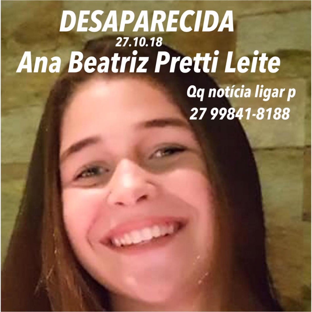 Uma adolescente de 15 anos está desaparecida desde a noite de sábado (27), depois de discutir com a mãe, em Vila Velha. Ana Beatriz Pretti Leite saiu de casa, na Praia da Costa, por volta das 22 horas de sábado, sem levar o celular e, desde então, não deu mais notícias.>