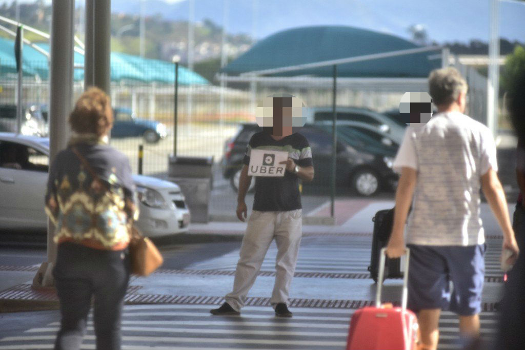 Eles ficam perto do portão de desembarque do aeroporto, do lado de fora, aguardando a saída de passageiros. Alguns oferecem até pagamento por cartão de crédito ou débito nas placas. Os carros ficam estacionados por ali mesmo, alguns com adesivos com o nome da empresa gerenciadora do aplicativo para a qual dizem trabalhar.>