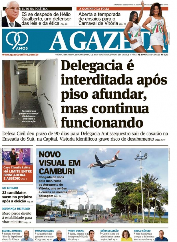 Foi solicitado então à Defesa civil uma vistoria no local, que constatou que a delegacia não possuía estrutura física e nem condições mínimas para as atividades policiais. Nem para a habitação humana, haja vista o iminente risco de desabamento, assinalou a portaria de abertura do procedimento administrativo. O fato foi denunciado em matéria de A GAZETA em novembro do ano passado.>