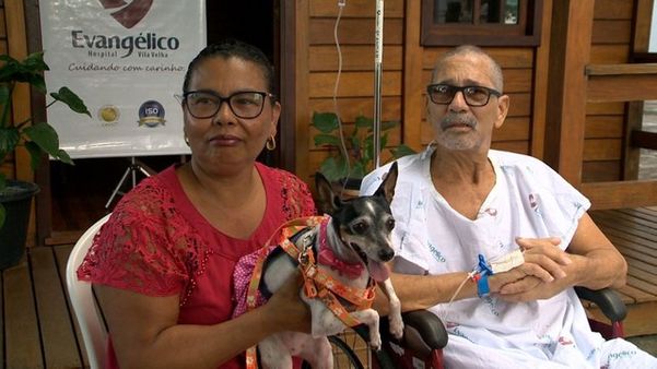 A ida do animalzinho até o hospital aconteceu por meio do projeto O que importa para você, que realiza pequenos desejos dos pacientes, contribuindo com a recuperação deles.>