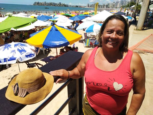 "Amo Guarapari. Se tem uma cidade que eu trocaria BH era por Guarapari. É uma cidade bonita e tranquila. Antes de vir para Guarapari, eu ligo e aviso todo mundo: 'quer ir pra Guarapari? Se quiser vem comigo, se não quiser eu já estou lá'", brinca a comerciante.>